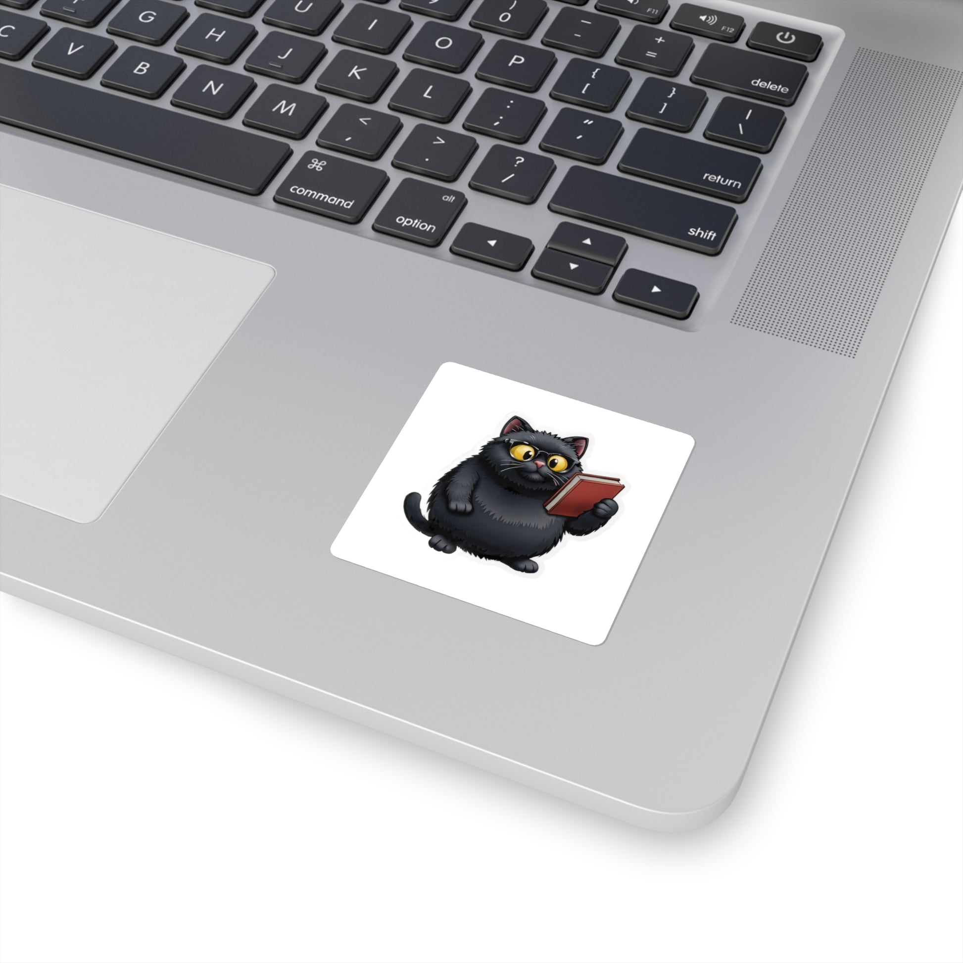A little bookish cat for your laptop, journal, or planner. This glossy square sticker features a fluffy black cat wearing round glasses and holding a red book — a tiny scene that sparks quiet curiosity. The glossy paper finish gives colors a lively pop while the vinyl base and strong acrylic 3M backing keep it stuck where you want it. Use it to mark your favorite notebooks, personalize a water-resistant-free laptop surface, or tuck it into a snail mail note for a fellow reader. The sticker reads like a nod to slow afternoons with a good story — cozy, clever, and a touch whimsical.